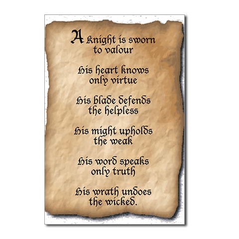I took that book, made ten 4-to-1 copies, and then pow-wowed with my course assistant for the next five weeks on the lesson plan for presenting the plot of this interesting work in the best possible light. We highlighted compelling plot points, interesting and instructive poetry, telling moments that revealed depth of character and, of course (if you know the story at all) the five tenets of valor that Bowen attempts to teach Einon, prince of the realm and son of the worst tyrant in long memory.