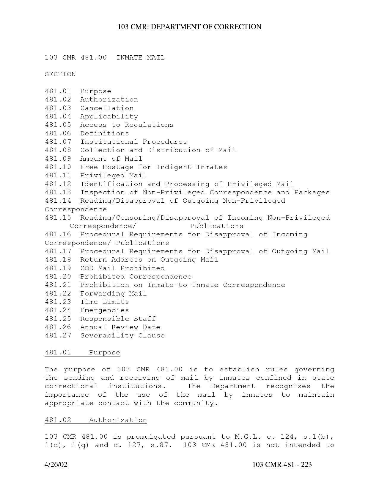 The last time a book I bought was challenged was about six months ago. I bought a Madonna biography, inside of which were color photos of her body in various stages of undress. For their own reasons, this Department has become strict about nudity. I do not agree with their strictness. I’d rather that they concentrate on violence, gore, criminal intent, and sexual perversity. And, to an extent, they do attend to these concepts. But there currently seems to be an across-the-board prohibition on nudity which (to my mind and tastes) is disturbing. But it’s reality. This particular book was not let in. Yet in 103 CMR 481 §14(3) you find this: